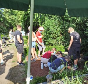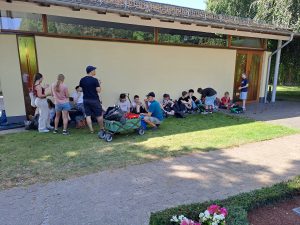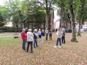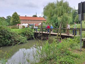Als erste Veranstaltung des Heimatvereins nach der Sommerpause wurde am 30.08.24 unter der fachkundigen Leitung von Frau Mussemann eine kleine aber feine Anzahl von Heimatfreunden aus Rheda durch das Areal der ehemaligen Klosteranlage geführt. Die Führung wurde zusätzlich illustriert durch Vorbereitungen für ein „Mittelaletrliches Turnier“ auf dem Gelände rund um das Kloster, das für das anschließende Wochenende geplant war. Beim anschließenden Kaffeetrinken im benachbarten Gasthaus Rugge wurden diverse Aspekte mit Frau Mussemann noch einmal vertieft. Norbert Große Aschhoff als Organisator bedankte sich zum Schluss im Namen des Heimatvereins bei der Gästeführerin.