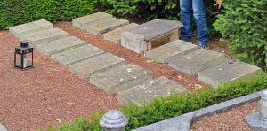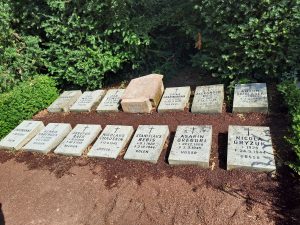 Vor vielen Jahren wurden diese verstreut auf dem Friedhof liegenden Gräber an einer Stelle zusammengelegt und mit Grabsteinen versehen.